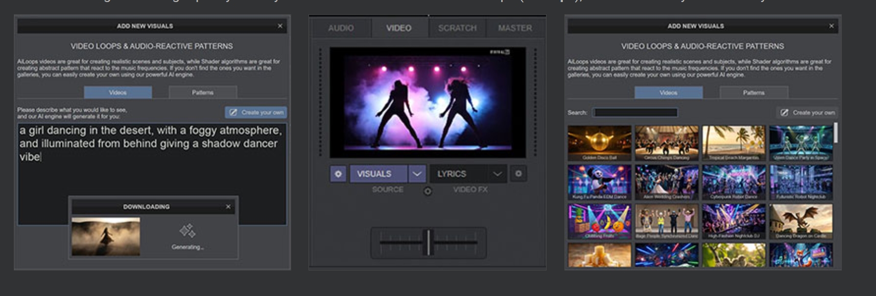 Du kannst die bereits bekannten, audio-reaktiven Animationen (Shader) verwenden, die jetzt von der KI-Engine anhand deiner einfachen Beschreibung generiert werden können.