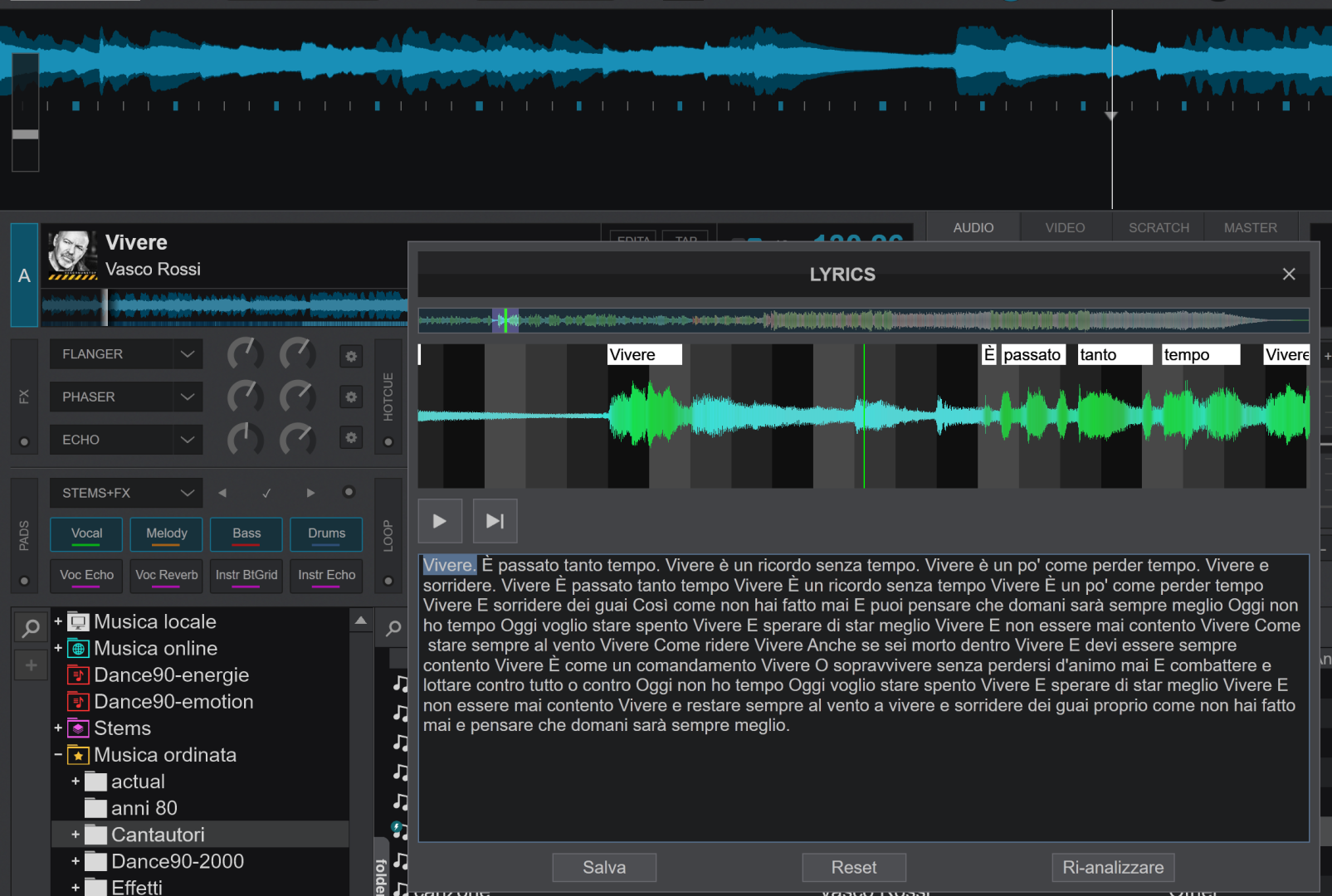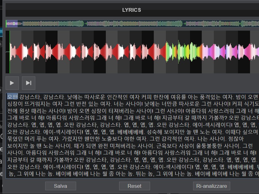 se lo carico nel deck e riapro l'editor lyrics ecco che produce i testi.