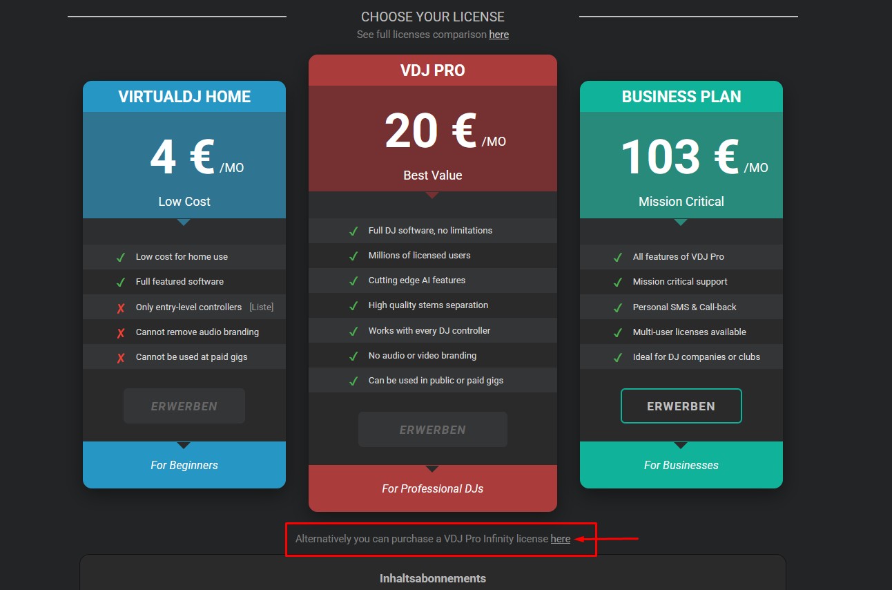 beim Text: Alternatively you can purchase a VDJ Pro Infinity license here