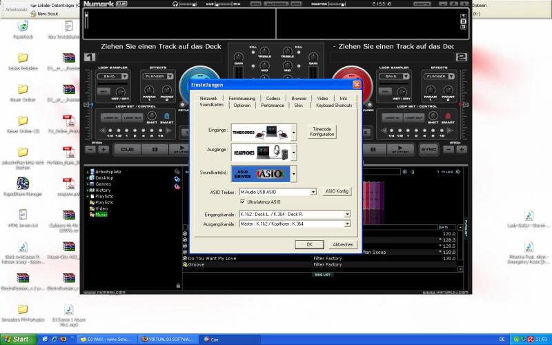 Ach ja, wie sind die Einstellungen Deiner SoundKarte? Du willst mit Cds auflegen. Hast Du da die Eingangskanäle auf Line gestellt?