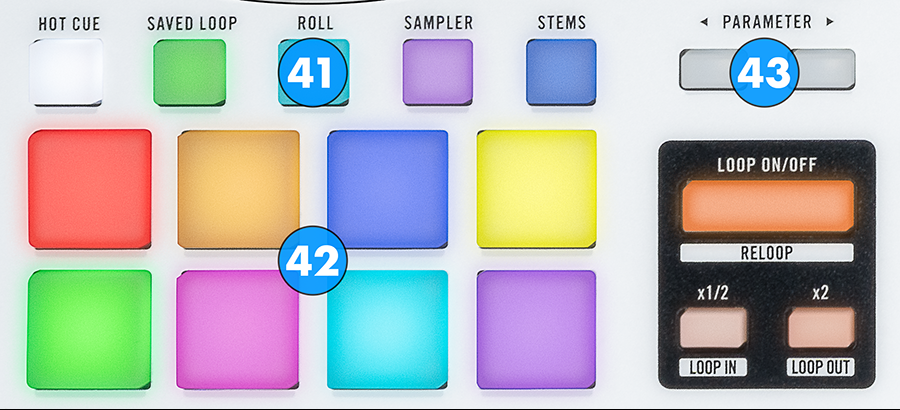 Use the PARAMETER buttons to select on which stem you are going to apply a loop roll effect.