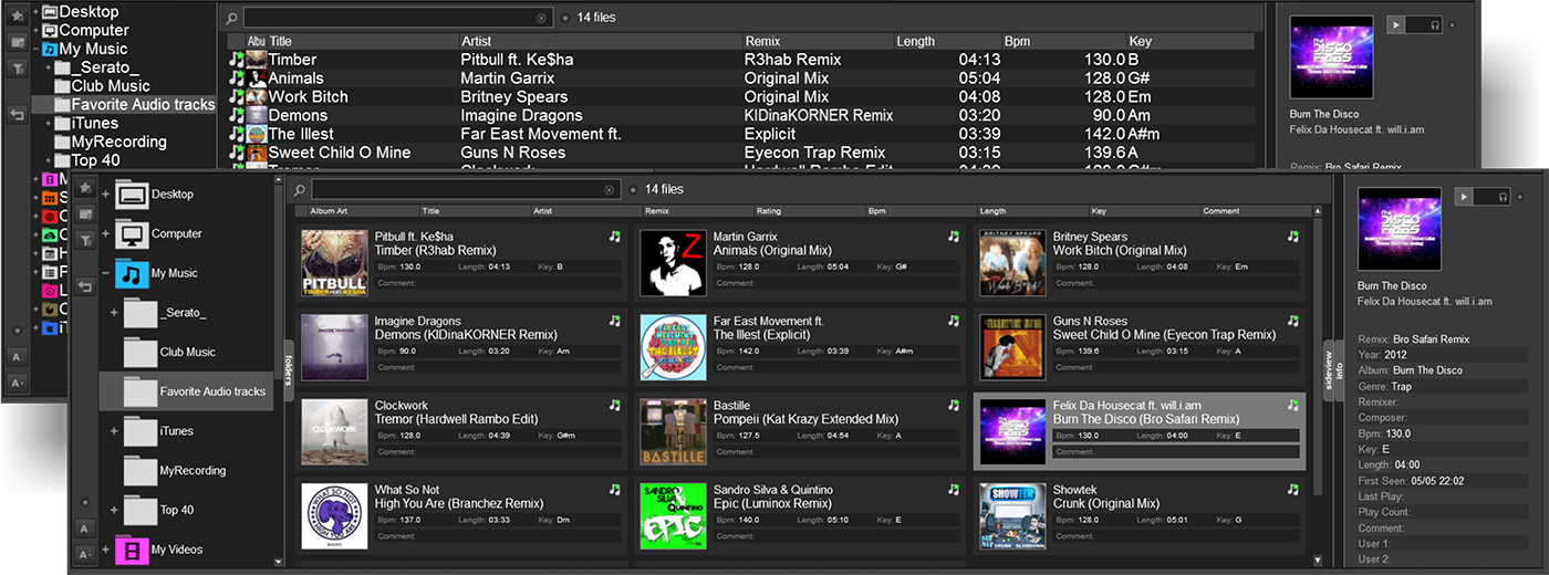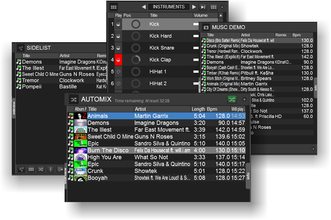 User Interface VirtualDJ - Main Interface Side panels Central panels Browser in grid mode Browser's SideView panels Effects panels Sampler Karaoke Recording & Broadcasting Custom buttons Embedded Editors