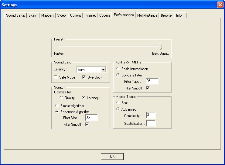 Je reviens vers le peuple VDJ en me prosternant devant lui .............. En effet je suis repassé sur la version 5.2.1 !!! Apres avoir essayé la version 6 et 6.01 (je prefere ne pas tenter la 6.02 pour garder une santé mentale correct ;-). Les reglages de Mon onglet performance se sont modifiés tout seul ! si si...... Du coup je ne retrouve plus mon precedent reglage (c'est pas bien) et le son accroche à tout va !!!!
