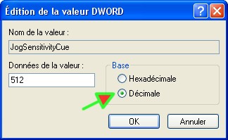 Pour modifier la valeur clic droit sur JogSensitivityCue -> clic sur modifier -> sélectionner décimale