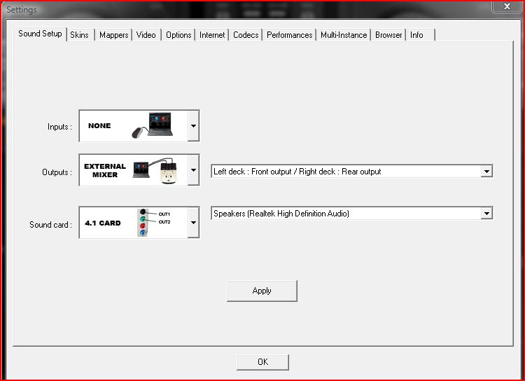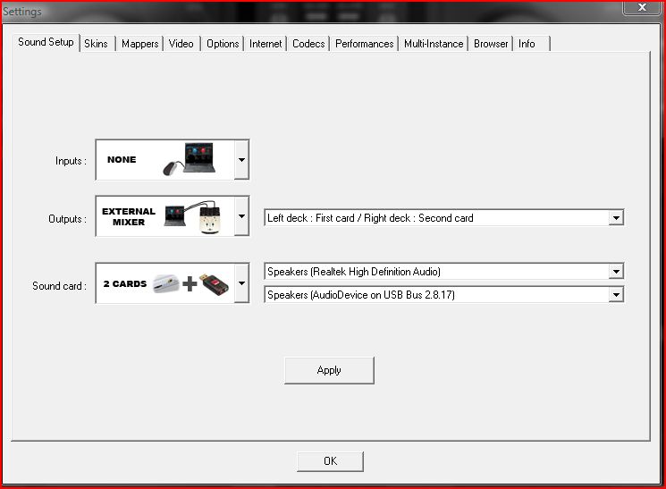 Is there a way for me to have VDJ export deck A & Deck B over the 2 sound cards so I can use the crossfader, etc. on the mixer?