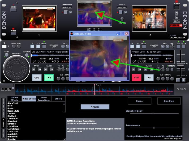 Pour actvié l'effet vidéo, il suffit de sélectionner l'onglet effet dans VDJ -> vidéo effects puis sélectionner l'effet désirer et clic sur activé