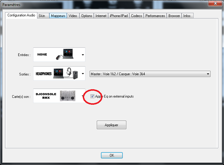 Configurez l'option audio de VirtualDJ comme sur l'image