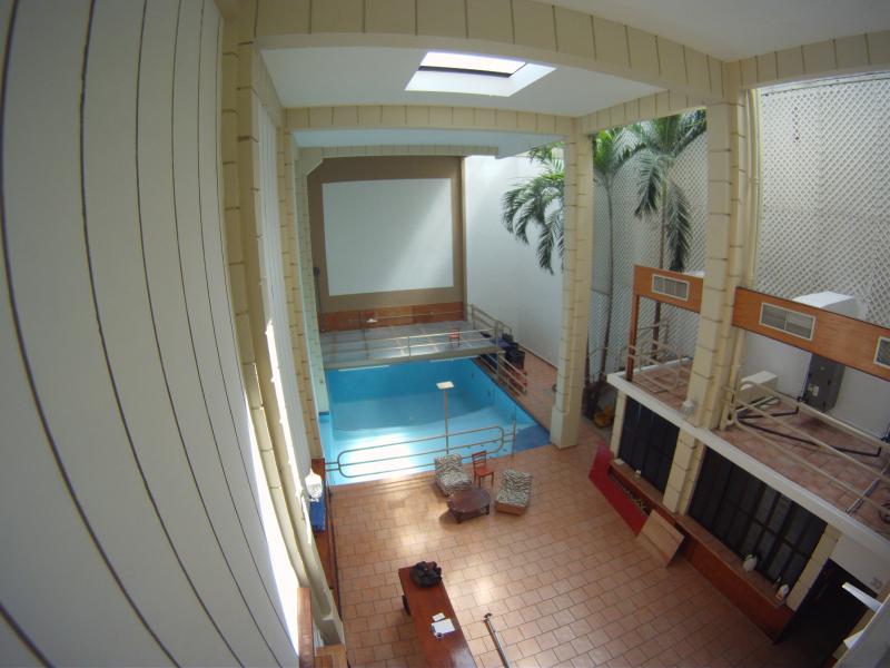 the pool is also going to have some affect on sound... not exactly sure what, but it is..