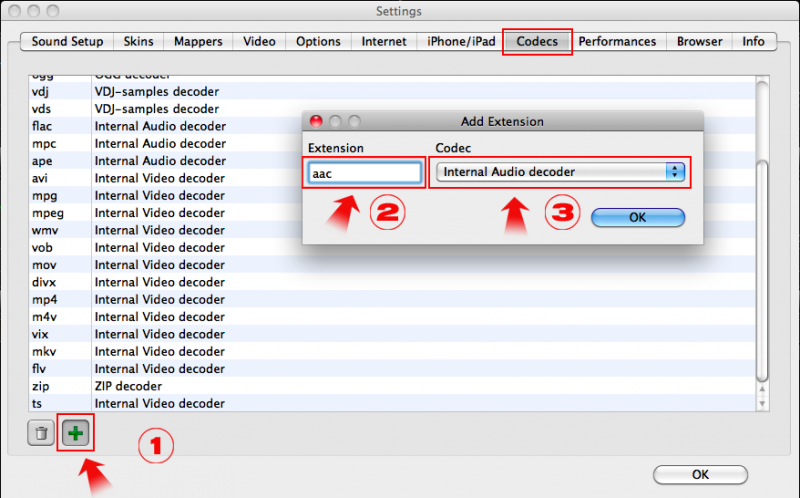 This is how it is being done go to: Virtual DJ config then choose "CODEC" then click the green "+" sign below left corner of the screens that labeled as step "1" then a pop-up window will appear that has the area to type the files extension labeled as step "2" then once done again click on the drop drop menu on the right just beside the window area where you type your extension that is labeled step "3" this is where you have to assigned your system/VDJ to handle your files by using the default decoder or the internal video or audio decoder and if you full the list down you can choose many of them to see and try how it will behave and works well on your systems. To see mine on the left flank of this photos that is the way how i added all my codec library most of them i have to change the decoder type for me to work well on my systems and i'm using the internal audio and video decoder which helps me to run my audio and video smoothly. Hope this helps you thank you.