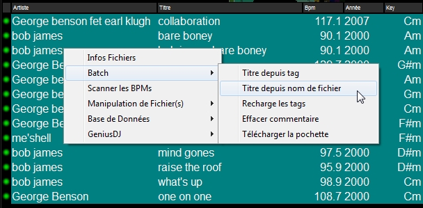 Bonjour , j ai mes morceau de musique qui sont corectement afficher dans l explorateur windows , mais certain pas dans Vdj , j ai juste l auteur mais pas le titre ! y a t il un moyen de les afficher?