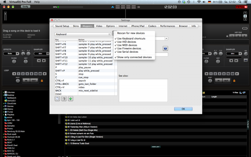 Vdj zeigt übrigens generell keinen anderen mappings an außer "keyboard".