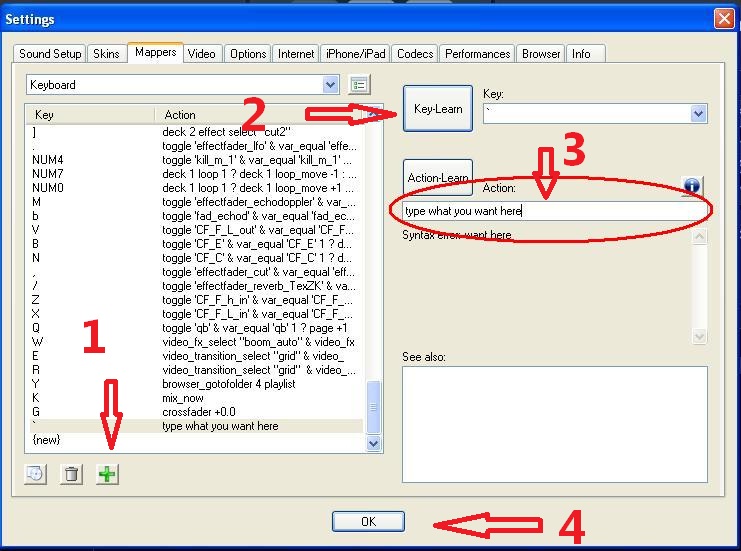 Press "key learn" button -> press the key you would like to map