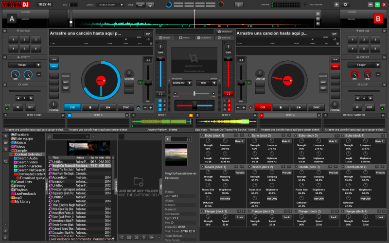 Hola buenas. Tengo una controladora de 4 decks. Buscaba una piel del VDj 8 pro lo mas completa posible pero que también muestre en el PC todos los efectos que tengo por deck. Es decir, tengo en el plato A 3 efectos y necesito que se vean los 3 a la vez en el PC, en la piel, para saber cual selecciono en cada momento. ¿Sabeis de alguna piel? De 4 decks. Gracias