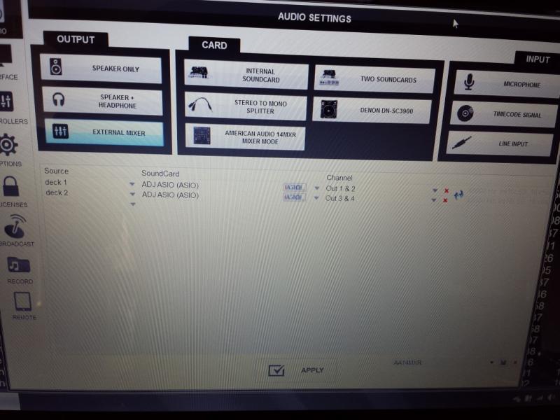 not really clear on what your asking. but right now my set up iz two Denon SC3900's, VDJ 8, American Audio Mixer 14MXR.... so what do u want to know ?