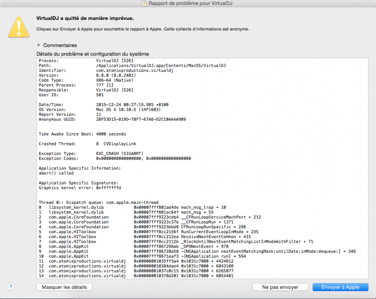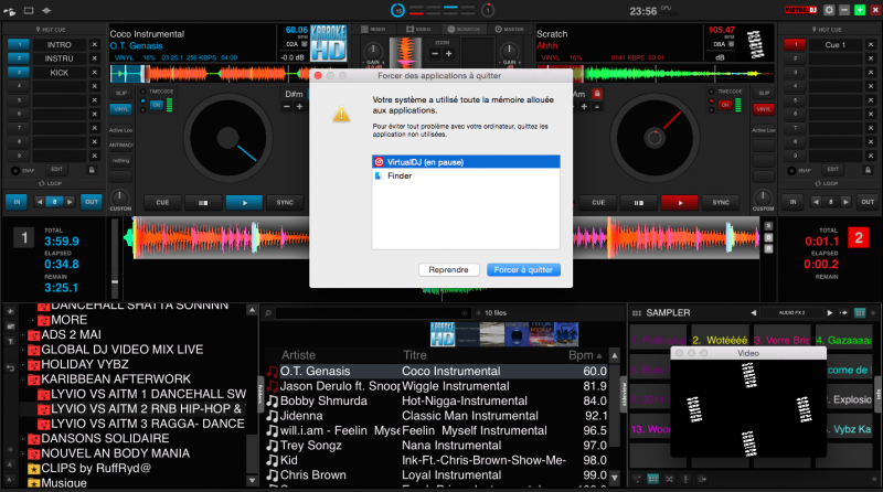 With this configuration I played for over an hour before vdj crashe because an application had used all the memory but its weird cause my mac have this config :