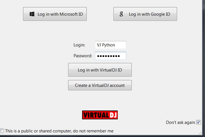Hello, I would like to ask for advice. When I use VDJ8 on my computer at home which is connected to the WIFI I do not need to input a password. It opens automatically. However, when I'm out of the house e.g. somewhere in a club, I connect the PC to the Internet through my phone. In this case it asks the password each time. Even when the PC is not connected to the Internet it denies to accept the password. I don't need the Internet on the party but I have to carry it with me because of this reason. Although I click "don't ask again" the result is the same. It drives me crazy and I really do not know what to do with it. Could anybody help me, please. Thank you very much.