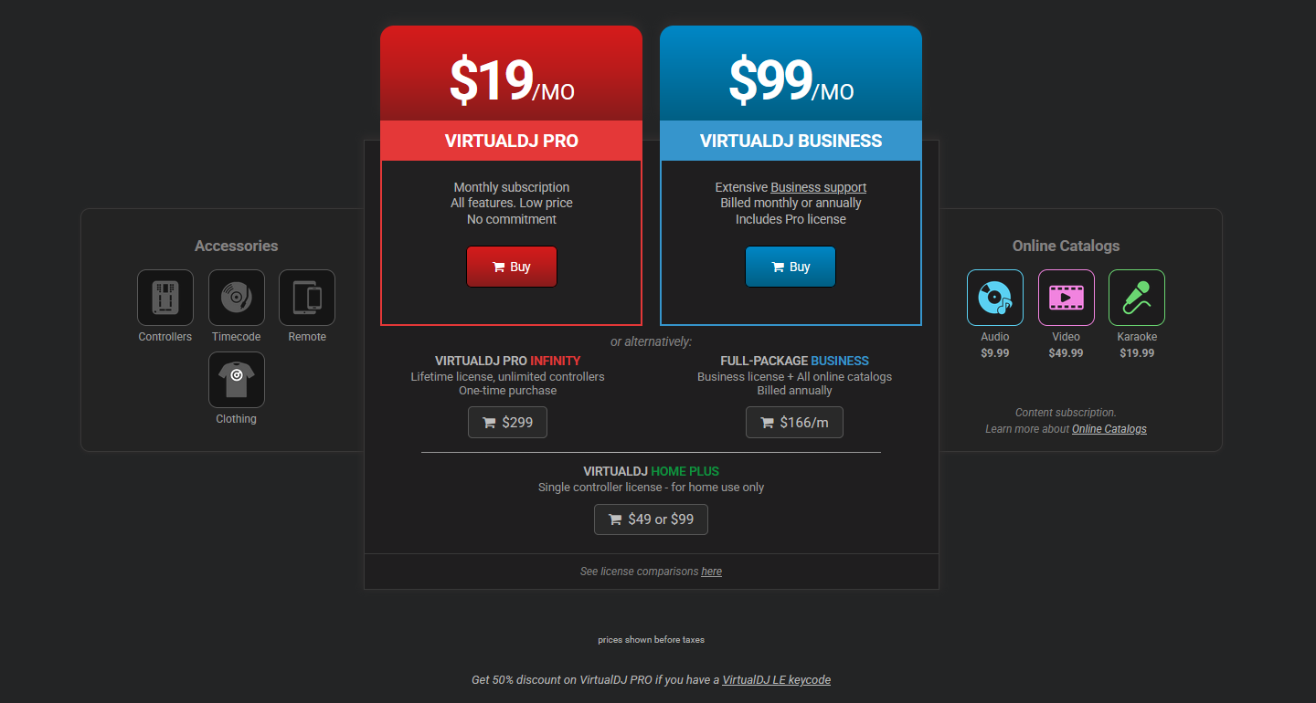Interesting to see that there's now a $4 per month home subscription shown inside VDJ alongside the $19 Pro subscription - but no Pro Infinity option!