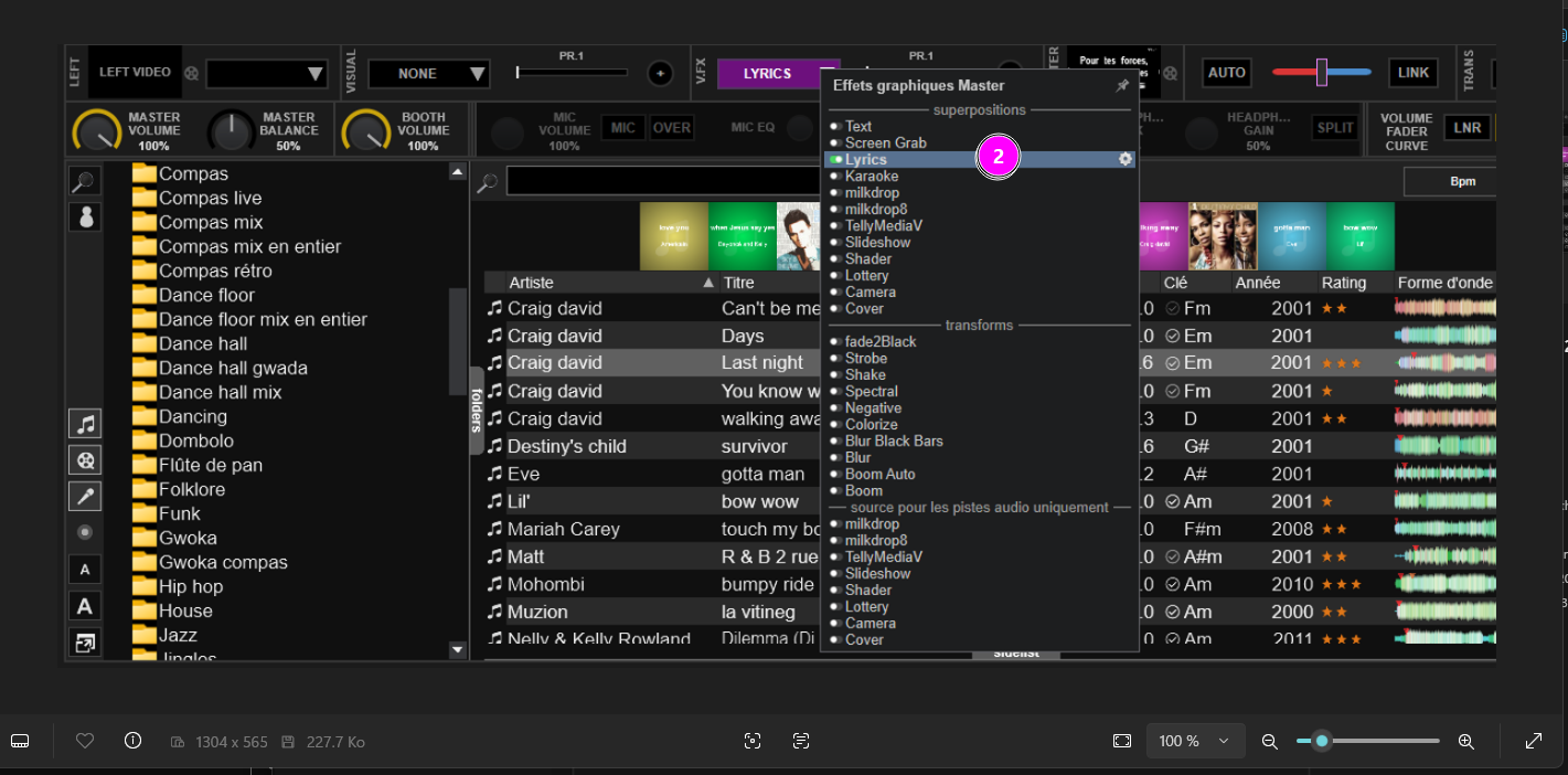 Une autres fonction implémenté dans VirtualDJ, les effets séparé en listes :