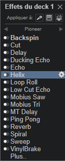 Il y a une liste défaut (effets par défaut dans VirtualDJ), une liste de tous les effets legacy + effets installés + les nouveaux effets Pioneer et Rane :
