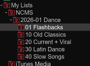 I should be able to move these lists and reorder them. But I'm unable. Goal, create a folder for an upcoming event. Add empty "playlists" or crates to the folder and then drag/drop songs from my library to those lists inside of the event folder. And be able to reorder the (containing folders) lists. I figured renaming would reorder, but it doesn't. What am I missing?