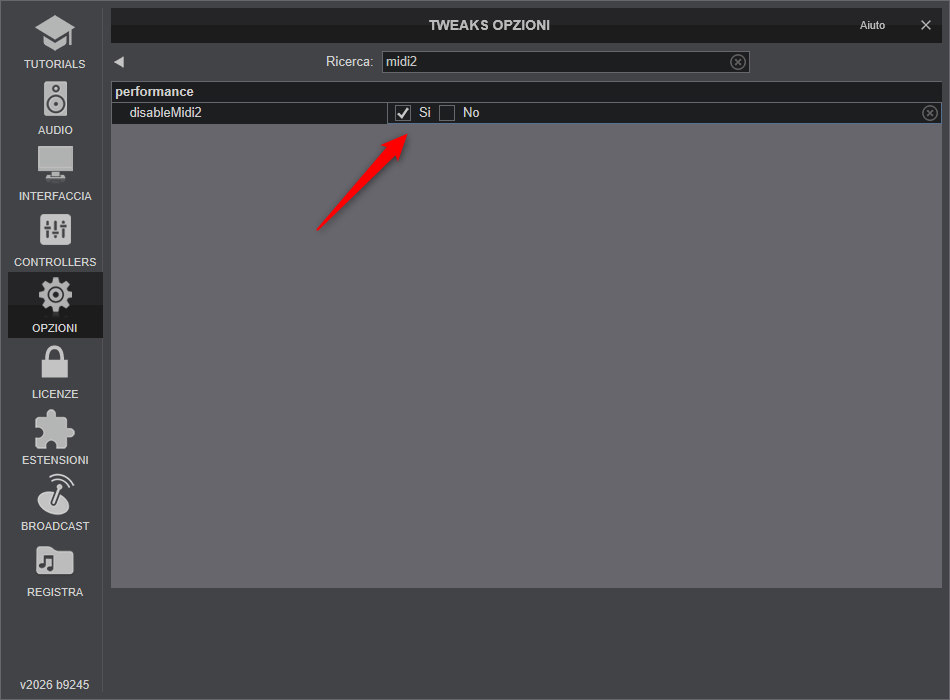 nota: Per abilitare / disabilitare il midi 2.0 impostare il seguente settaggio, quindi riavviare il pc: