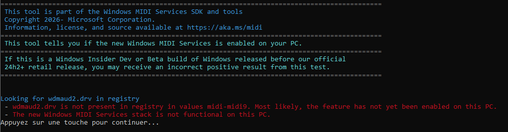 J'en déduis donc que le nouveau service MIDI est actif sur ton Windows d'après ton registre.