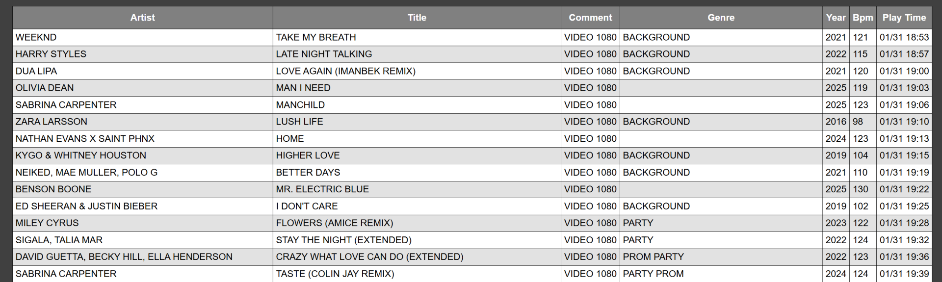 But if you Export that playlist to an HTML, CVS, or TXT file, at some point in the past, VDJ will only output the DATE in that field, not the actual time the file was played.