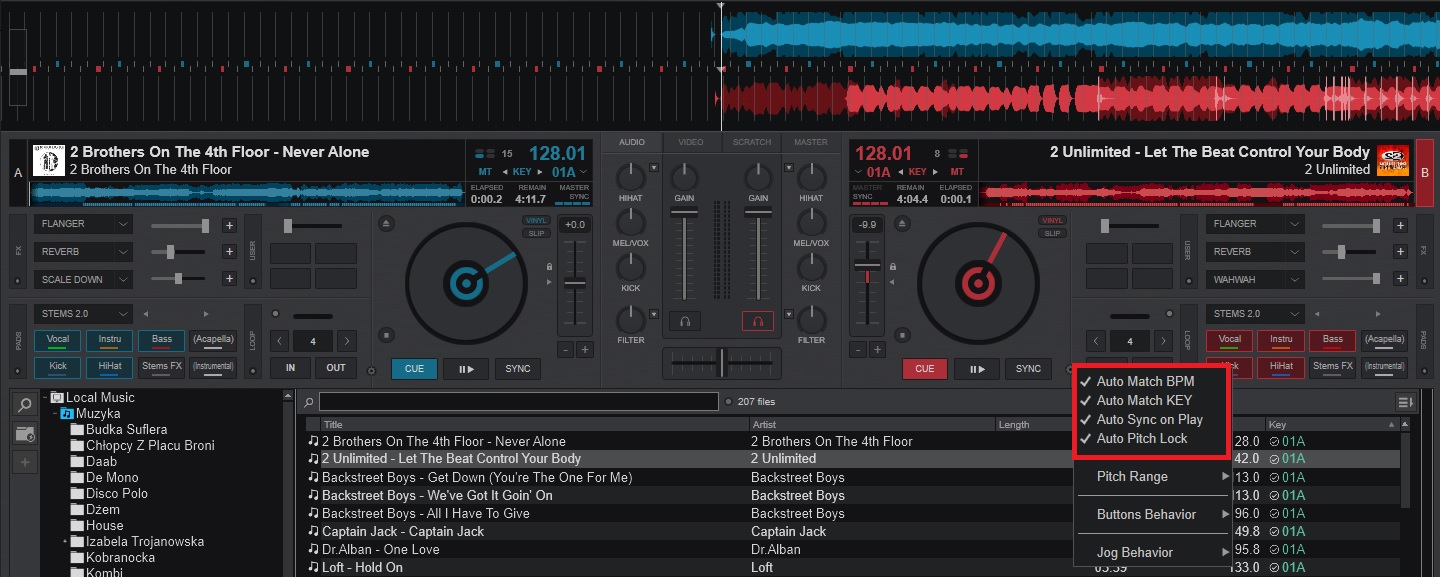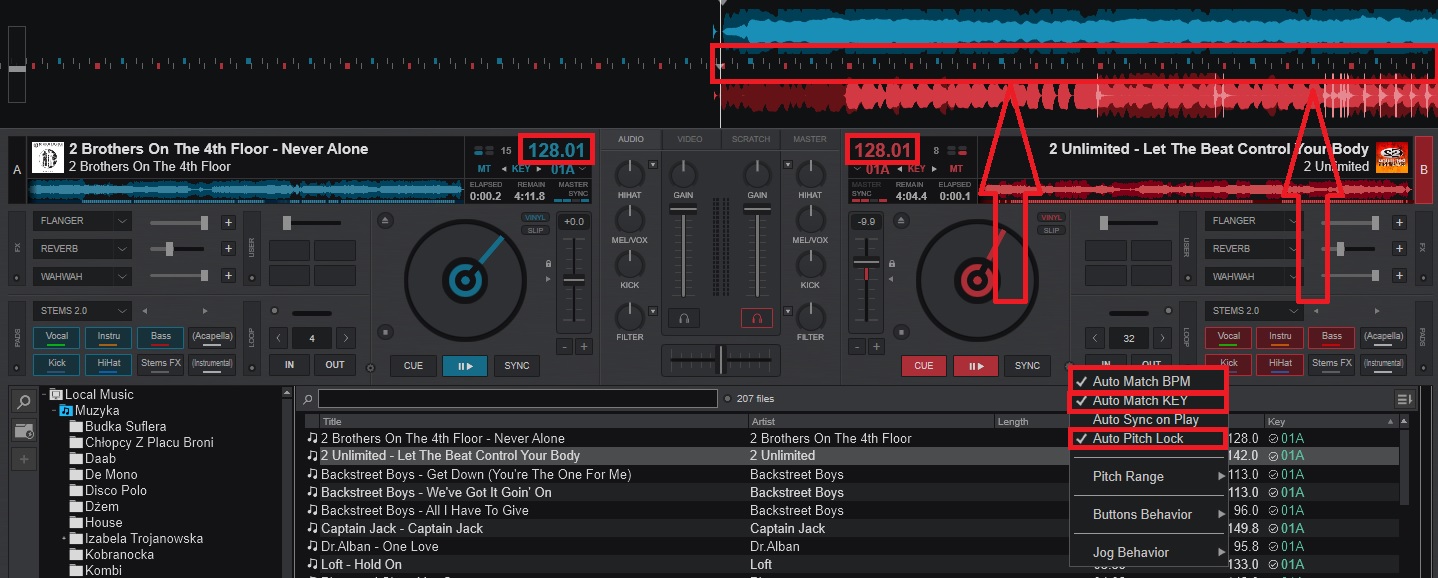 Auto sync or bpm match in settings