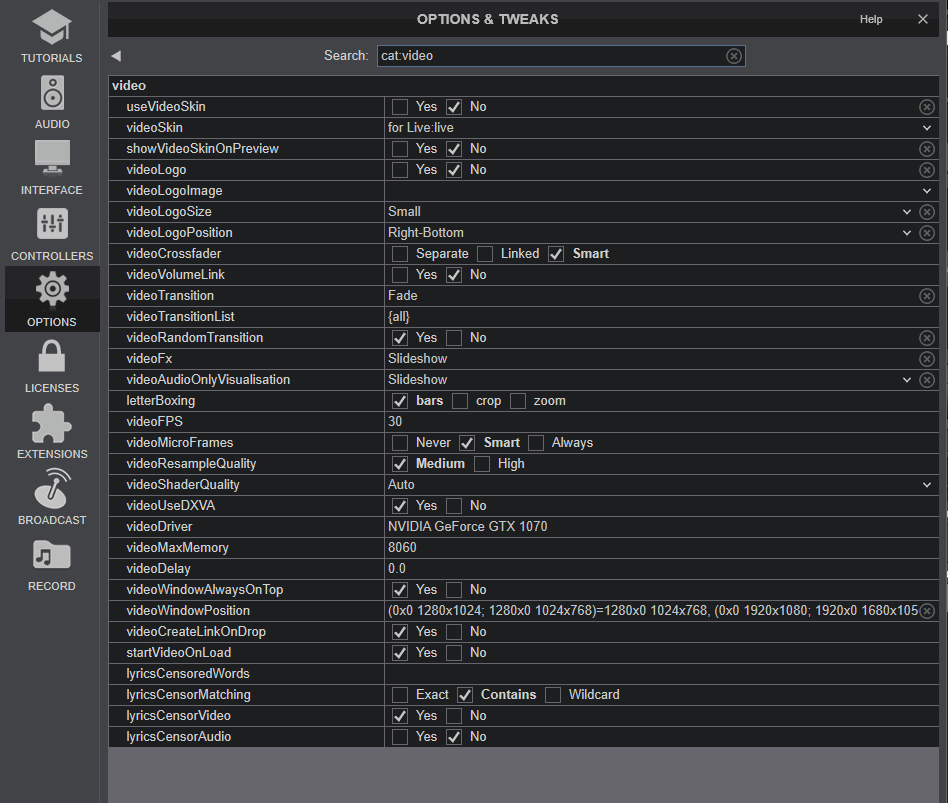 My VDJ display settings are attached in image, if some of these can be changed to enable full screen display I would appreciate some help with this..