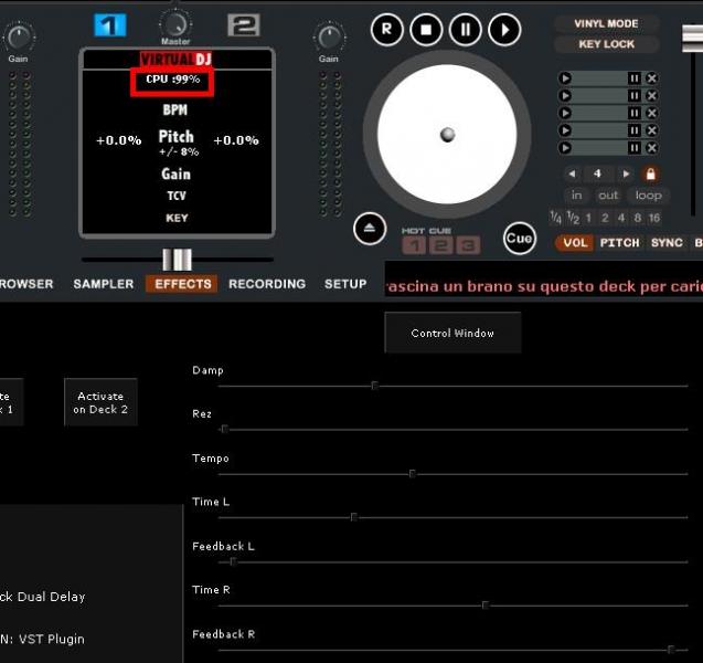 Playing the song the CPU goes around 20% but just I move a knob, the CPU goes to 99% (only in situation number 2 as above-mentioned)
