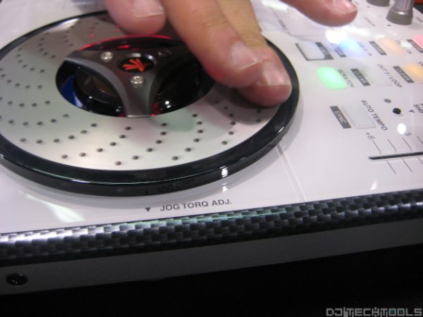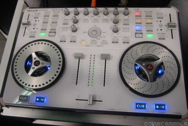 Vestax was showing off a very fancy looking vci-300 with space age wheels, a white finish and some carbon fiber touches. Given how much they cost to produce, dont expect to see this version of the 300 in stores and even if it did go up for sale the price tag would be a hefty one. Great to see someone actually design something really cool for once- these wheels are hands down the most bad ass jog wheels ever!