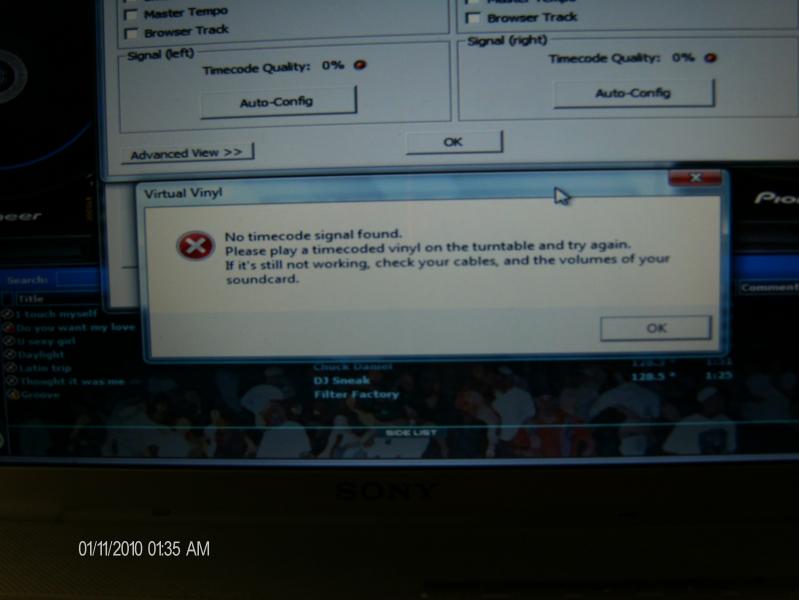 please somebody can help me with this,i have numark virtual vinyl i try auto config & this erros display i call numark they dont help me the say i have to buy some ,i use 2 denon s1200,laptop sony 32 bit vista,mixer denon,i try defierent ways,diferent version & the same,the software put crazy,skip sound,please help me,thanks