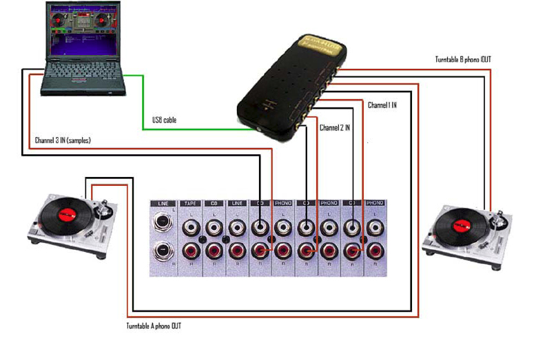 alors, j'ai opté pour deejay trim, que je pense recevoir demain, ou après demain, je me demande vraiment comment faire les connexion, car le plan juste au dessus, montre comment faire avec une carte son maya 44, je vois mon pot dans la semaine, si je pointe chez lui, avec tous mon matos, et que je sais pas comment faire, on va vite déprimé! lol