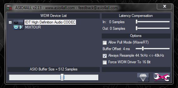 Με το ASIO4ALL δουλεύει καλά (κάτι με χαλάει στον ήχο αλλά πιστεύω να βρω την κατάλληλη ρύθμιση - τουλάχιστον δε σταματάει ο ήχος). Πριν είχα καταβάσει τον ASIO driver από το site της Reloop. Βλέποντας τη φωτό του ASIO4ALL τι πιστεύεται ότι χρειάζεται να αλλάξω στις ρυθμίσεις?