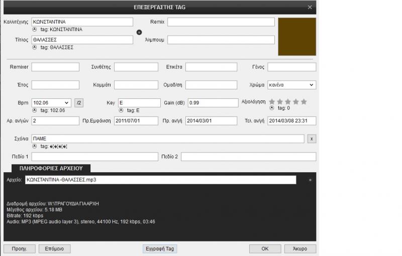 Σε οποια τραγούδια το δοκίμασα μου το έκανε αλλά μόνο όταν γράφω με ελληνικά στα σχόλια των tags και πατήσω εγγραφή tags μου τα βγάζει ιερογλυφικά.Οταν πατήσω το βελακι να γραφούν τα ιερογλυφικά στα σχόλια και τα επιλέξω μα το ποντίκι το προγραμμα κρασαρει