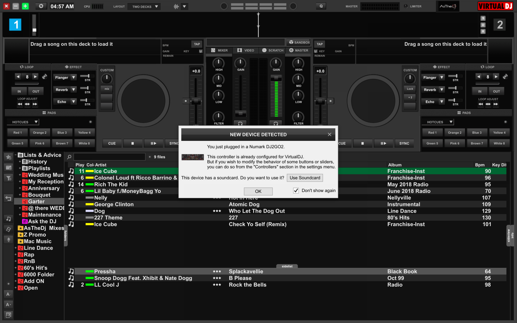 I assume that every time you plug your DJ2GO2 you get a pop-up window saying "Controller Detected"