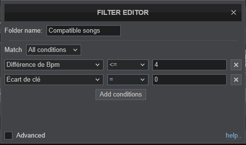 Already Played = 0 and Bpm Difference < 4 and (Key Difference < 1 or (Key Difference > 5 and Key Difference < 7))