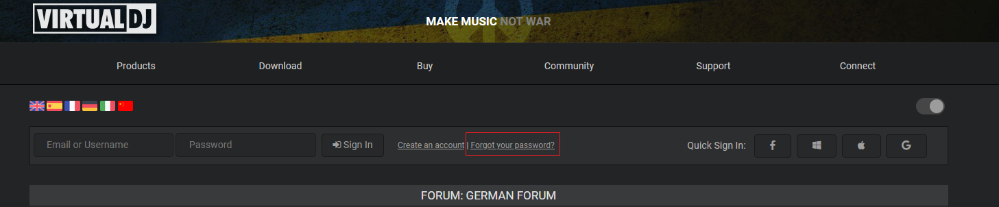 Also hier ausloggen, dann Passwort vergessen wählen und boldor80 eingeben. Dann solltest du eine Mail zur Rücksetzung des Passwortes bekommne. Dann setze das Passwort zurück und melde dich hier und auch im VirtualDJ (Programm) mit deinem Benutzernamen boldor80 + dem neuen Passwort an.