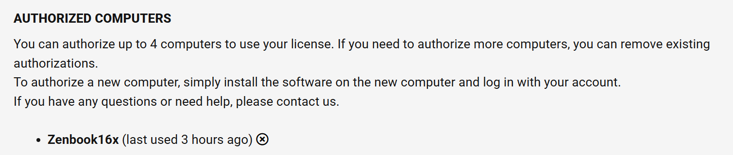 I think dublinmike's issue is different anyway, because he's running multiple computers, in multiple venues, each (he says) with its own separate Pro license - and yet he's getting flagged by VDJ (presumably on his subscription account) due to logging in to too many computers.