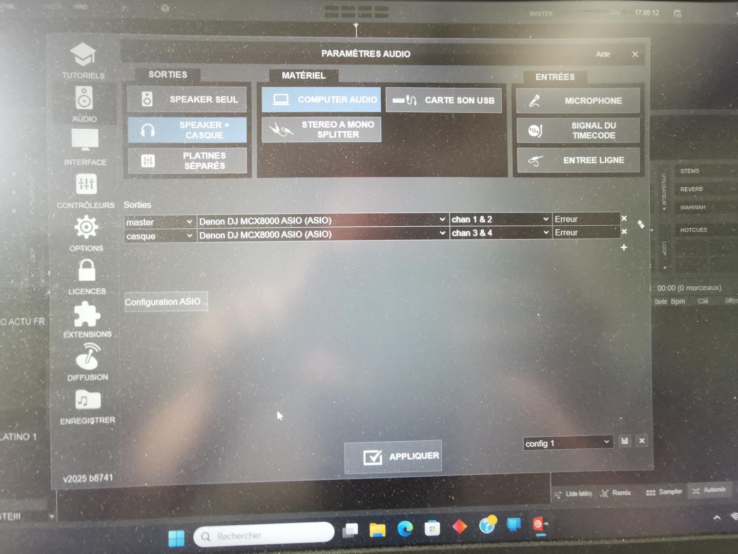 utilisateur de la version pro (v2025 b8752) sur pc avec controleur denon mcx 8000,je rencontre un probleme.