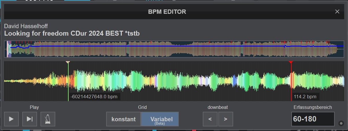 After setting a few anchor points, I wanted to set another one near the beginning of the song. Suddenly, it acquired an unrealistically high tempo. It also could not be removed. The only option left was to ‘Delete all anchor points’.
