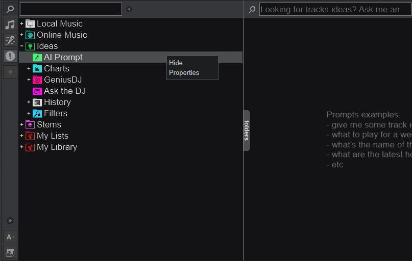 It says to right click on the "AI Prompt" folder, and a window should show, allowing me to select whether to use "Ask VirtualDJ" for the AI, or to use "Ask Google".