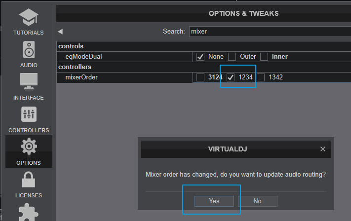 - Once you do this change, VDJ should ask you if you want to apply this change to the audio Setup.