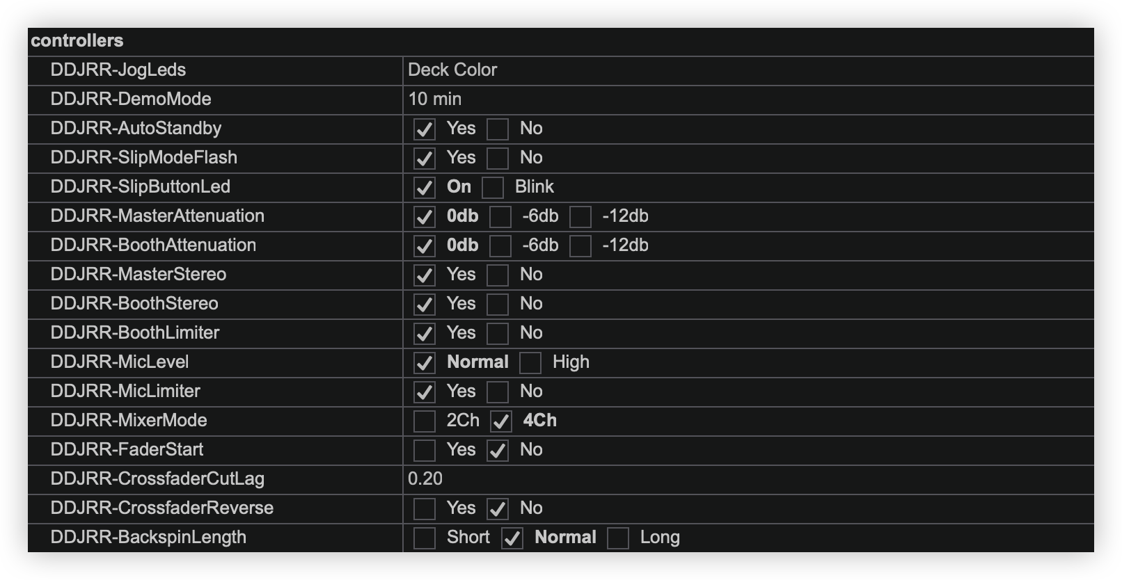 - Select the CONTROLLER category, and you should get the DDJ-RR specific settings