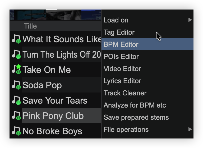 Once editing the BeatGrid is complete, exit out of the BPM Editor and the progress will be automatically saved. To reset the BeatGrid to the default value use the BPM Options inside the Editor or right-click on the track in the File List to select the Analyze BPM option.
